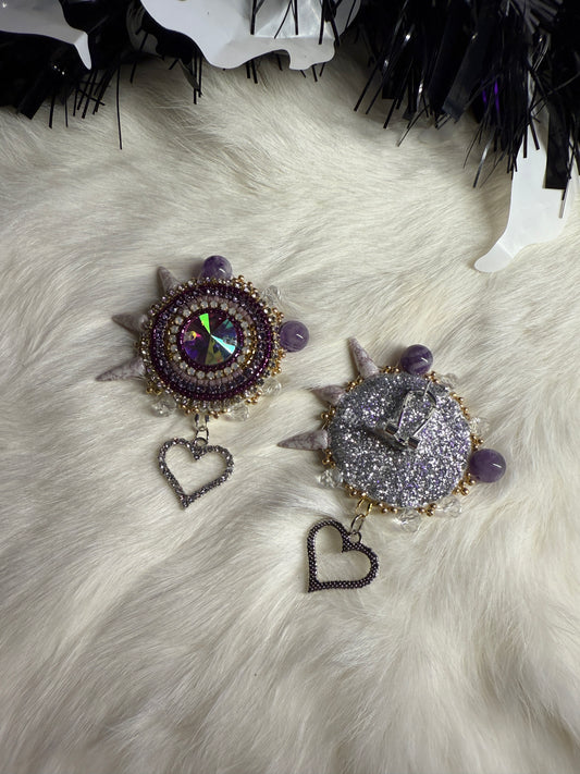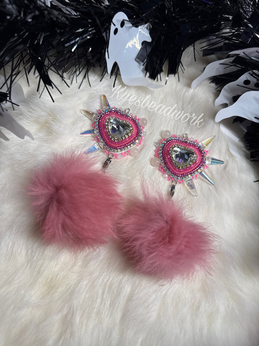 Sold outSpiked Hearts With Rabbit Fur Poms