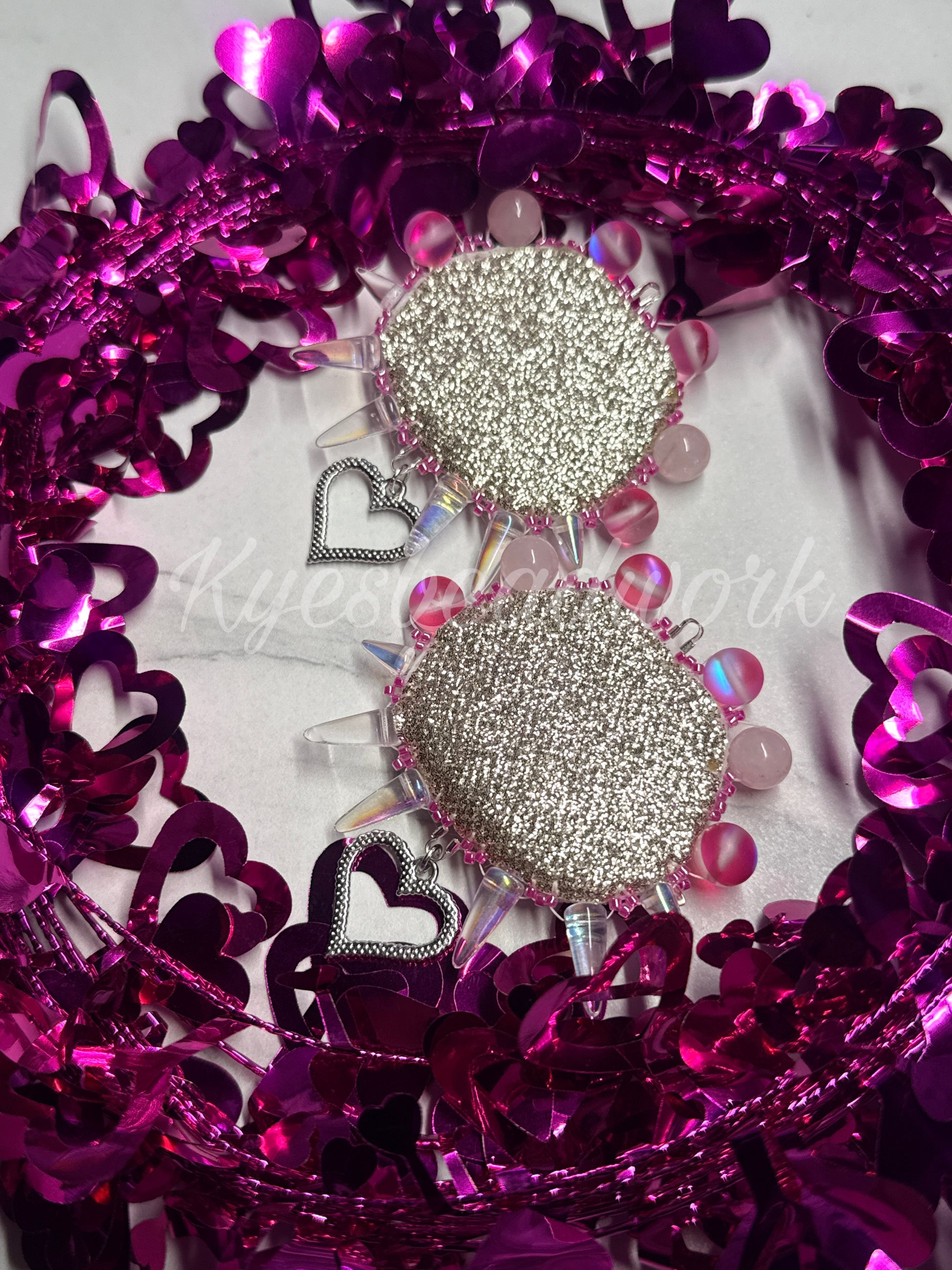 One of a kind handmade beaded earrings! by yours truly. Hello kitty heart spiked earrings! Perfect for that special someone. ⊹₊⟡⋆